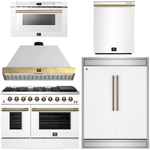 FORNO Galiano Package - 48" Gas Range, Range Hood, 60" Side-by-Side Refrigerator, Dishwasher and 24" Microwave Drawer in White with Antique Brass Accents