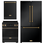 Gordon Ramsay by THOR Kitchen Package - 30" Gas Range, 36" Refrigerator with Ice Maker and Dishwasher in Black Matte with Bronze Accents, AP-RSG30B-BRZ-2
