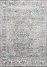 • With calming tones of charcoal, silver, and blue, this vintage floor covering provides a relaxing vibe in your living room, entryway, or bedroom.