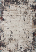 • This abstract area rug features a warm ivory field enclosed by rugged splashes of charcoal. The layout makes this piece ideal for framing - use to anchor a seating arrangement, under the dining table, or beneath a piece of statement furniture.
