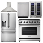 THOR Kitchen Package - 36" Gas Range, Range Hood, Refrigerator with Water and Ice Dispenser, Dishwasher, Wine Cooler, AP-LRG3601U-11