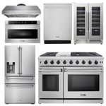 THOR Package - 48" Propane Gas Range, Range Hood, Refrigerator with Water & Ice Dispenser, Dishwasher, Wine Cooler, Microwave