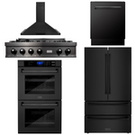 ZLINE Appliance Package - 36" Rangetop, Range Hood, Refrigerator, Dishwasher, Double Wall Oven in Black Stainless