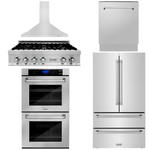 ZLINE 5-Piece Appliance Package - 36 In. Gas Rangetop, Range Hood, Refrigerator, Dishwasher and Wall Oven in Stainless Steel, 5KPR-RTRH36-AWDDWV