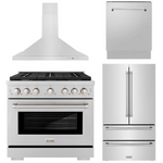 ZLINE Appliance Package - 36 Inch Gas Range, Range Hood, 3 Rack Dishwasher, Refrigerator, 4KPR-SGRRH36-DWV