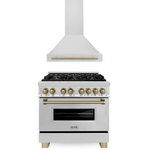 ZLINE Kitchen and Bath Autograph Package - 36 In. Dual Fuel Range, Range Hood in Stainless Steel with Champagne Bronze Accents, 2AKP-RARH36-CB