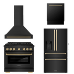 ZLINE Autograph Package - 36" Gas Range, Range Hood, Dishwasher, Refrigerator with Water & Ice Dispenser with Bronze Accents