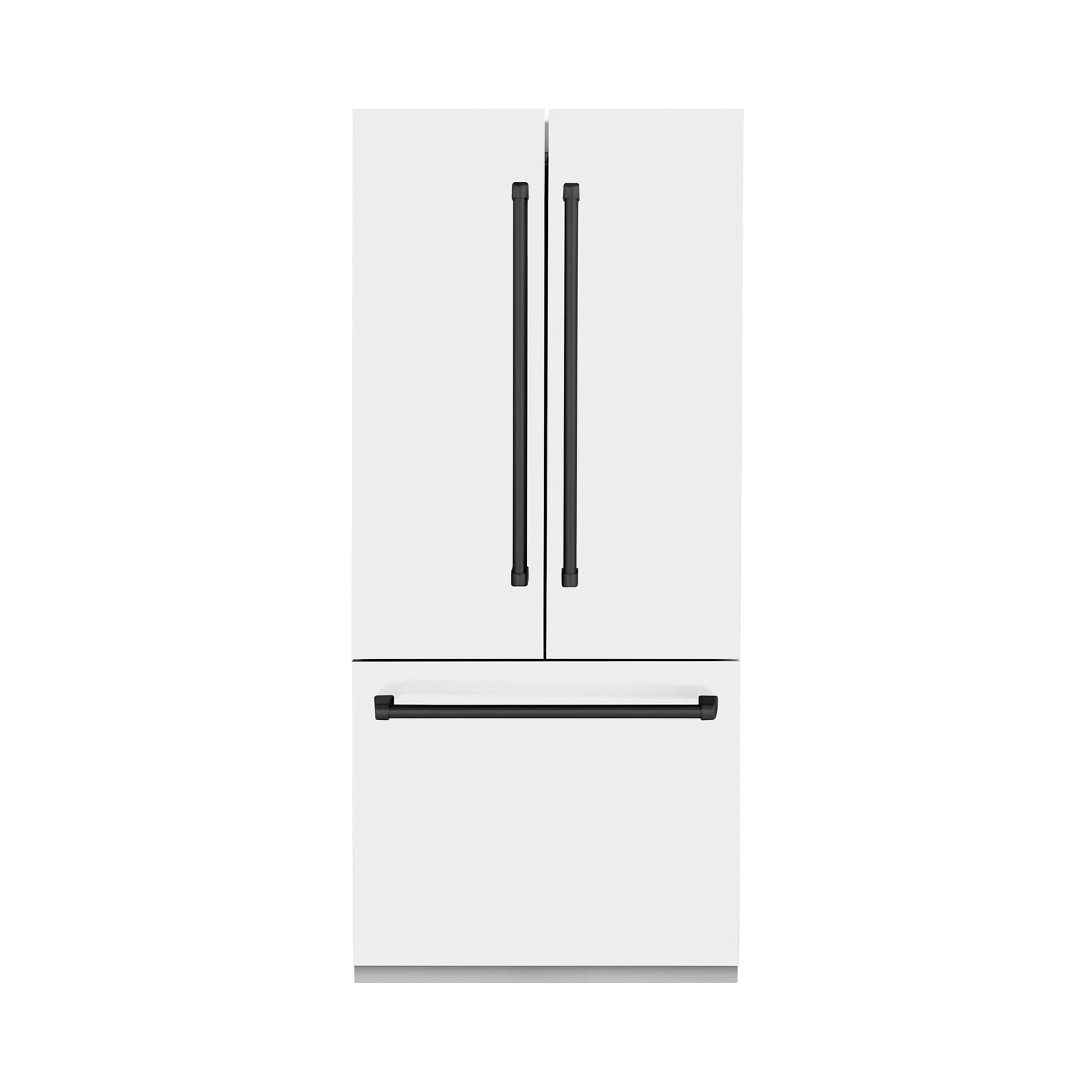 ZLINE 36 In. 19.6 cu. ft. Built-In French Door Refrigerator with Internal Water and Ice Dispenser in White Matte with Black Accents, RBIVZ-WM-36-MB