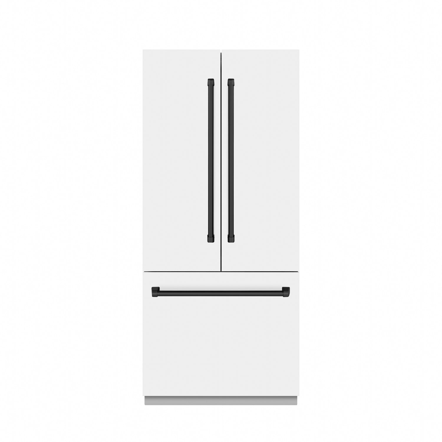 ZLINE Autograph 36" 19.6 cu. ft. French Door Built-In Bottom Freezer Refrigerator with Water Dispenser and Ice Maker in White Matte with Stainless Steel Interior and Matte Black Accents, SRBIVZ-WM-36-MB