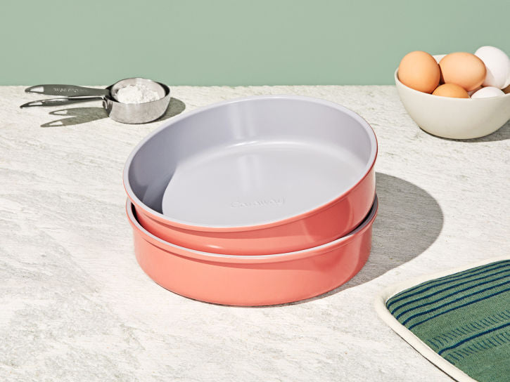 Meet the healthiest Circle Pan in Perracotta by Caraway. Because everything is better in twos–meet the Circle Pan Duo, featuring two of the 9" Circle Caraway Pans, bundled for your convenience. Featuring a non-toxic, naturally slick ceramic coating, these durable pans make healthy baking (and clean up) easier than ever.