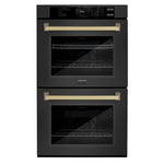 ZLINE 30" Autograph Double Wall Oven with Air Fry and Self-Clean in Black and Champagne Bronze Handle, WADBZ-30-CB