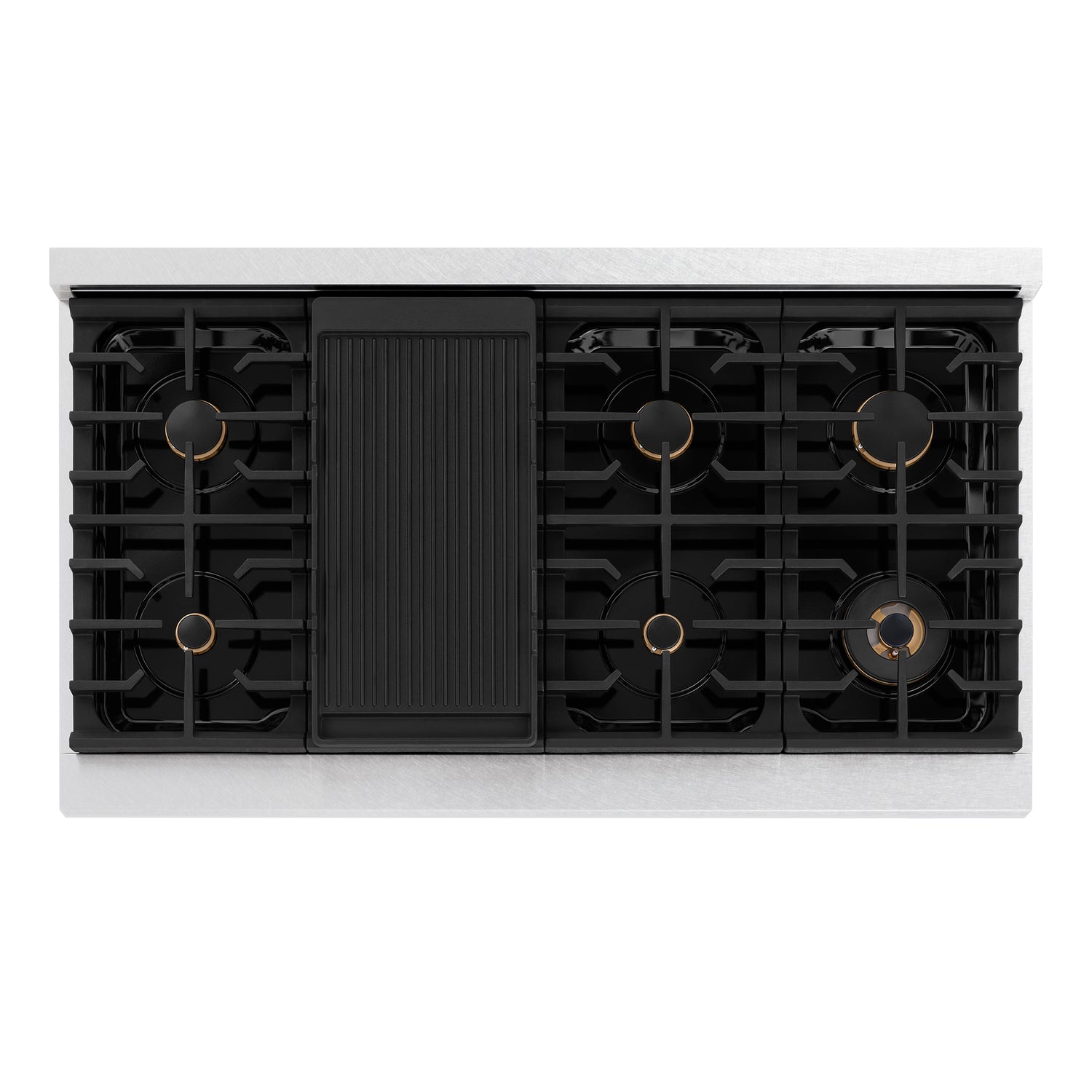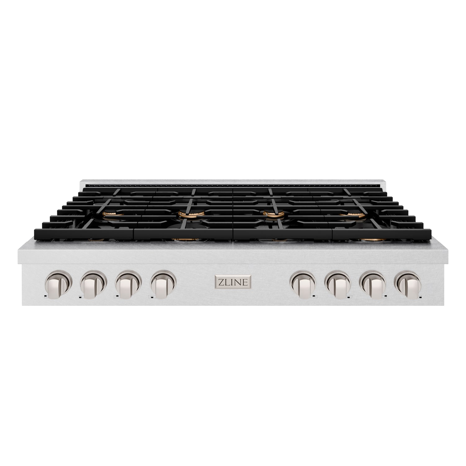 ZLINE 48" Paramount Gas Rangetop with 8 Brass Burners and Porcelain Cooktop in Satin Stainless Steel, SRTS-BR-48