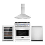 Cosmo Package - 30" Gas Range, Wall Mount Range Hood, Dishwasher and Wine Cooler, COS-4PKG-090