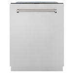 ZLINE Autograph 24" Monument Series 3rd Rack Top Touch Control Tall Tub Dishwasher in Stainless Steel with Polished Nickel Helix Handle, 45dBa, DWMTZ-30424-KPN