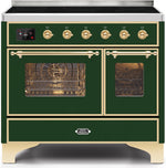 ILVE Majestic II 40" Induction Range with Element Stove and Electric Oven in Emerald Green with Brass Trim, UMDI10NS3EGG