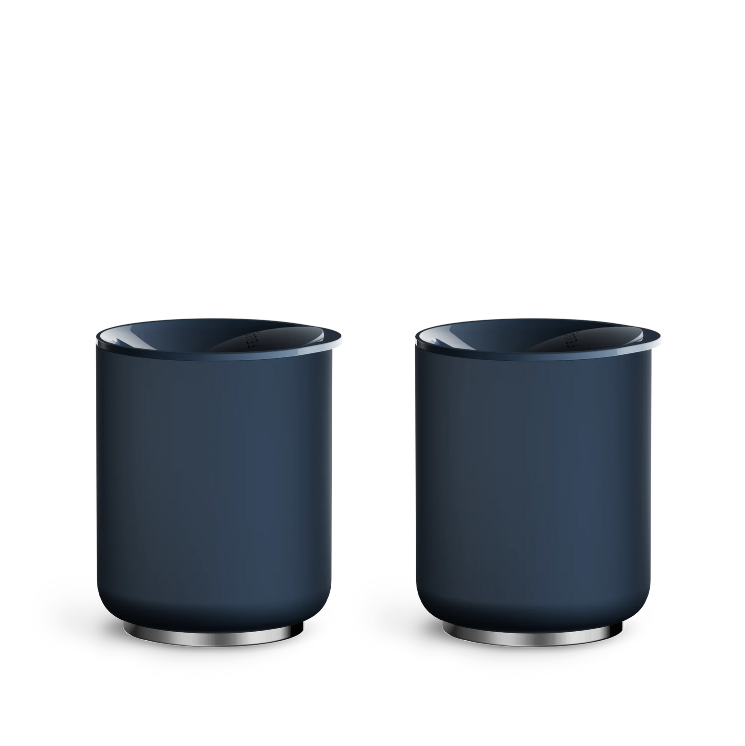 A pair of stainless steel tumblers for wine, whiskey, and whimsical concoctions, packaged in a ready-to-gift box. Featuring True Taste ceramic coating, a pleasantly thin lip, a weighted base, and a unique swipe-to-sip lid. Enjoy a superb sipping experience, al fresco.