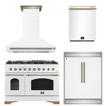 FORNO Espresso Package - 48" Dual Fuel Range, Range Hood, 60" Refrigerator, Dishwasher in White with Antique Brass Accents