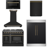 FORNO Appliance Package - 48" Gas Range, Range Hood, 60" Refrigerator, Dishwasher, Microwave in Black with Antique Brass Accents