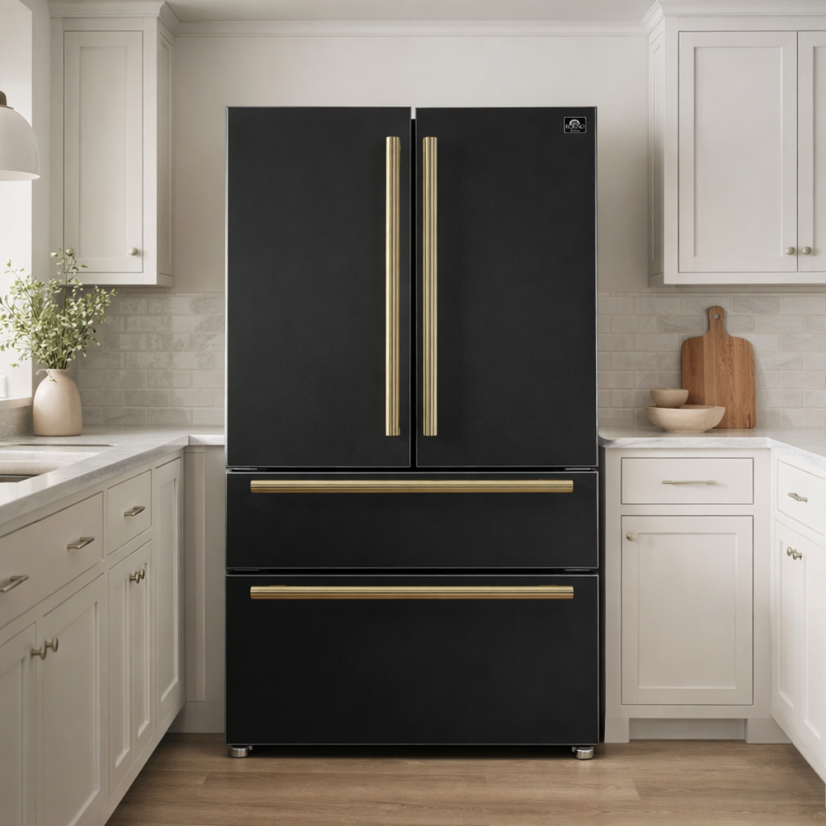 Have a stylish and efficient refrigerator in your kitchen with Forno Espresso's 36-inch White French Door Refrigerator. Its sleek design features customizable handles and advanced features, such as an automatic ice maker and fast cooling functions, while providing plenty of space with 19.2 cu.ft. capacity and adjustable shelving. Get energy efficiency and precise temperature control with ENERGY STAR certification and an inverter compressor, and easily organize with see-through drawers and door bins. Plus, brighten up your kitchen with high-efficiency LED lighting.