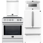 FORNO Espresso Package - 30" Induction Range, 36" Refrigerator with Ice Maker, Dishwasher and 24" Microwave Drawer in White with Silver Accents