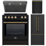 - FORNO Espresso Package - 30" Induction Range, Range Hood, 30" Refrigerator with Ice Maker and Dishwasher in Black with Antique Brass Accents