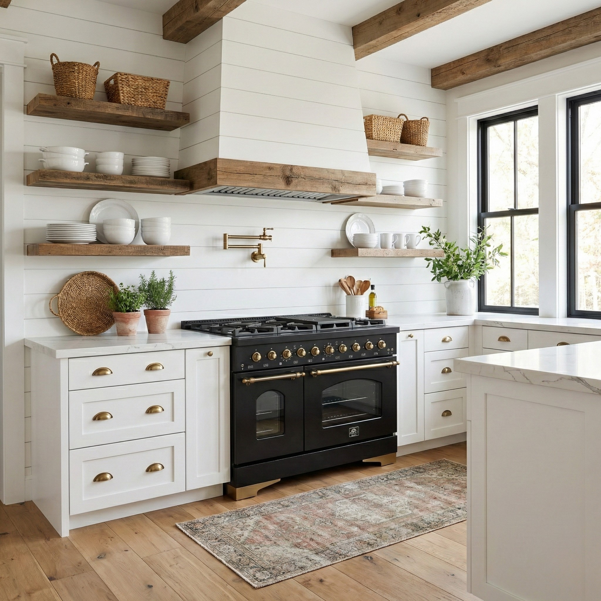 - Timeless Aesthetics: Features a sleek black finish paired with antique brass accents, along with vintage-inspired knobs and handles for a classic touch.