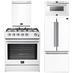 FORNO Espresso Package - 30" Gas Range, 30" Refrigerator with Ice Maker, Dishwasher and 24" Microwave Drawer in White with Silver Accents