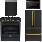 FORNO Espresso Package - 30" Gas Range, 36" Refrigerator with Ice Maker, Dishwasher and 24" Microwave Drawer in Black with Antique Brass Accents