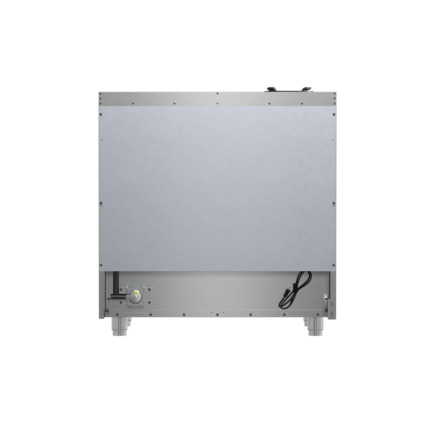 The Forno Massimo 36 Inch Gas Range harmonizes professional style and 304-grade stainless steel durability. Its 6 sealed burners, totaling 83,000 BTU, include a precision 20,000 BTU dual-ring burner that can simmer at 1,000 BTU. Continuous cast iron grates ensure stability on the enamel surface. The 5.36 cu.ft. convection oven, with a blue enamel interior and 3-layer glass window, reaches 30,000 BTU for versatile cooking. It features 2 telescopic racks, an air fryer kit, a wok support, a reversible griddle, an LP conversion kit, and durable zinc-coated metal knobs.