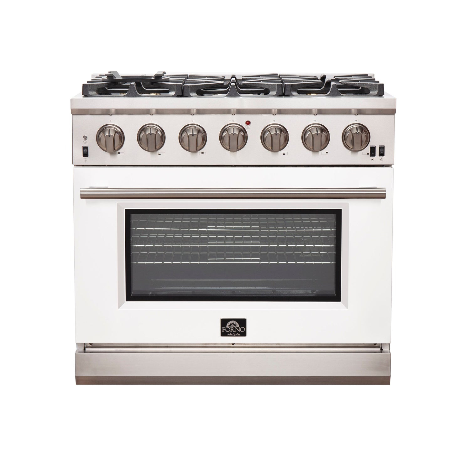 FORNO Capriasca 36" 5.36 cu. ft. Gas Range with 6 Italian Burners in White, FFSGS6260-36WHT