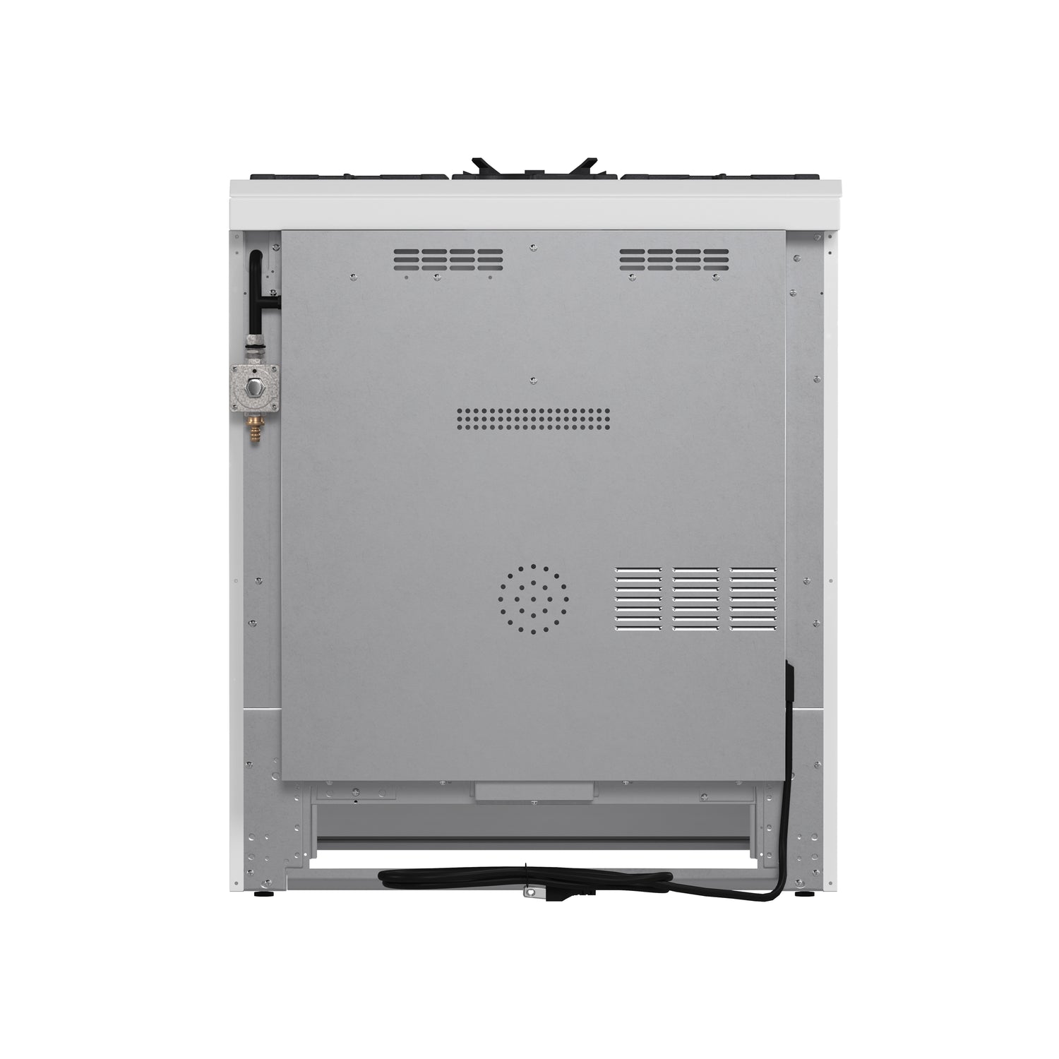 The Forno Leonardo 30" gas range in white combines modern design with professional-grade performance. Its powerful cooktop delivers 39,500 BTU across continuous cast iron grates, providing stability and effortless cookware movement. The deep recessed black enamel surface simplifies cleanup, keeping spills contained. The spacious 5.0 cu. ft. convection oven offers 22,500 BTU of broil and bake power, with two adjustable rack heights and a high-powered convection fan for even heat distribution. Designed for reliability, the auto re-ignition feature ensures consistent performance, while natural gas compatibility and an included propane conversion kit provide flexible installation options.