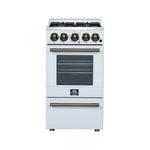 FORNO Lamazze 20" 2.05 cu.ft. Freestanding Gas Range with 4 Sealed Burners in White with Antique Brass Accents, FFSGS6265-20WHT