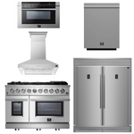 FORNO Appliance Package - 48" Gas Range, Range Hood, 60" Refrigerator, Dishwasher, Microwave Drawer, AP-FFSGS6239-48-8