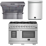 The Forno Capriasca 48 Inch Gas Range enhances your home kitchen with professional styling and performance through its durable and beautiful 304-grade stainless-steel design. The cooking surface features 8 sealed dual-ring brass burners, totaling 160,000 BTU. All burners, each at 20,000 BTU, can simmer precisely at 1,000 BTU. Continuous heavy-duty cast-iron grates facilitate easy sliding of pots or pans off heat over the enamel cooktop cavity, simplifying spill cleanup. The cumulative 6.58 cu. ft. double ovens, with a 44,000 BTU output, are enclosed in a blue enamel interior. The 4.32 cu.ft. main oven offers a powerful infrared mesh broiler, a rotisserie skewer and a convection fan for precise, and consistent cooking on multiple levels. The package includes 6 telescopic stainless-steel oven racks, 1 rotisserie kit, wok support, griddle and an LP conversion kit. Additionally, zinc-coated illuminated metal knobs with bezel rings ensure enduring beauty.