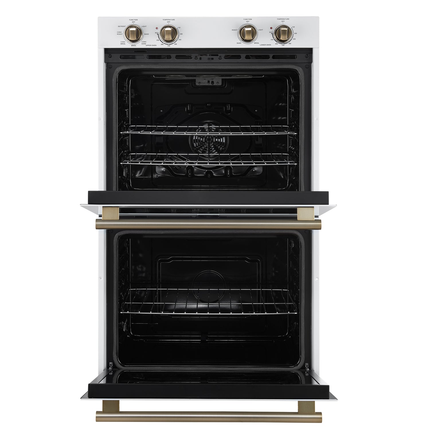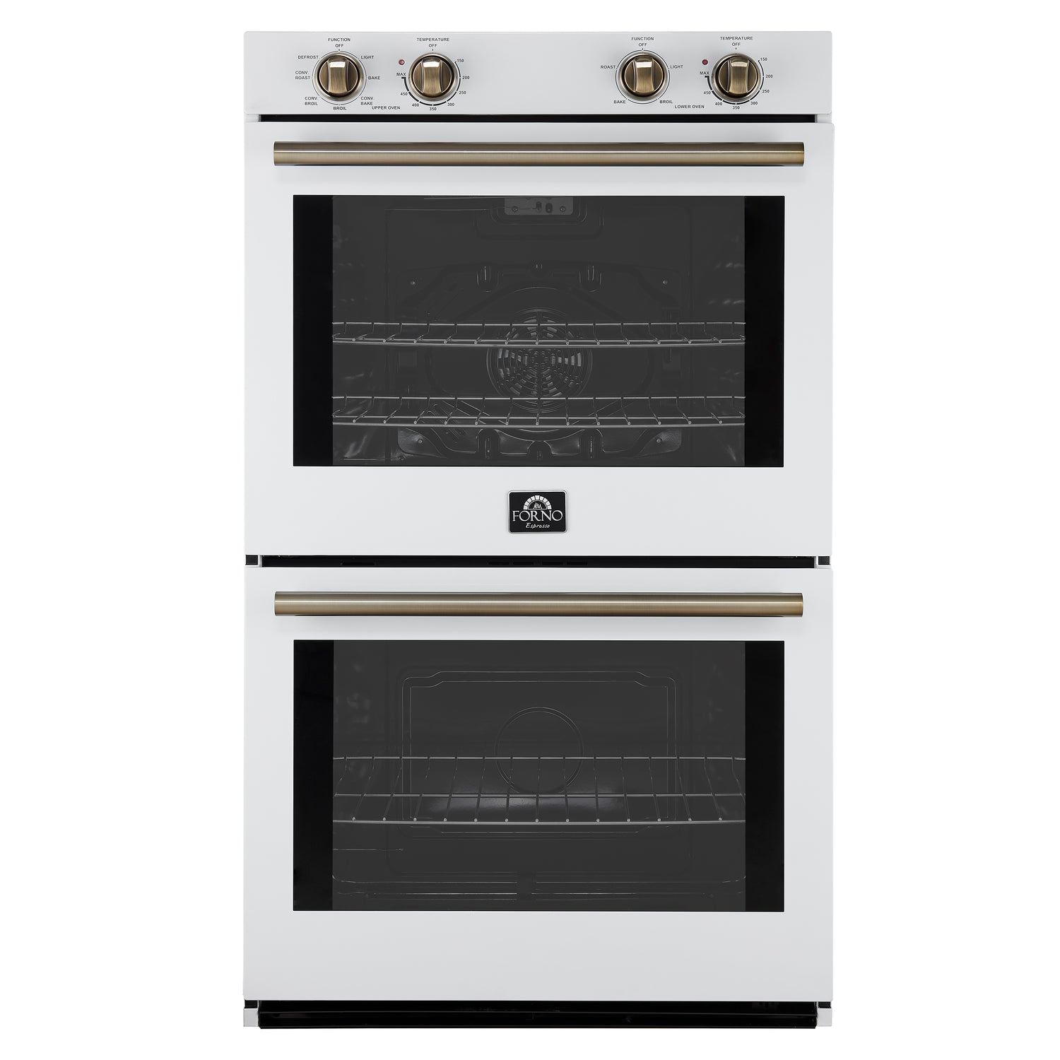 FORNO Espresso Vomero 30" 10 cu. ft. Electric Double Wall Oven in White with Antique Brass Accents, FBOEL1324-30WHT