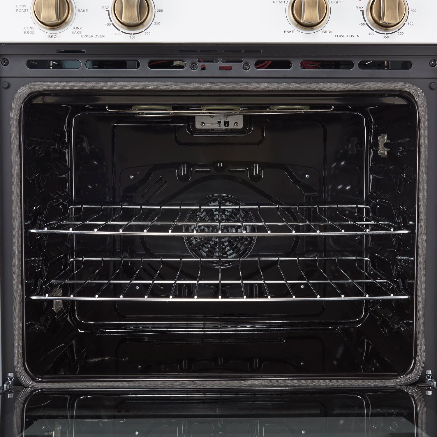 • Spacious Capacity: Dual 5 cu.ft. ovens (10 cu.ft. total) let you cook multiple dishes at once for family meals or entertaining.