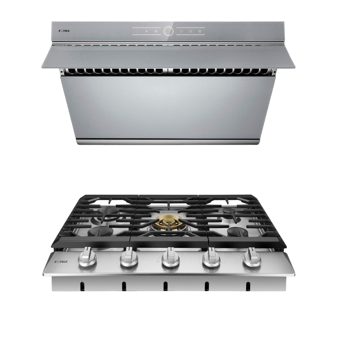Fotile Package 30 Inch Cooktop and 30 Inch 850 CFM Range Hood in Silver Gray, AP-GLS30501-3