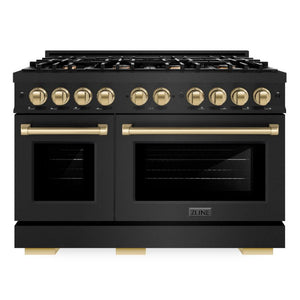 Vendor:ZLINEZLINE 48" 6.7 cu. ft. Select Double Oven Dual Fuel Range in Black Stainless Steel with 8 Brass Burners, HDRB-BR-48
