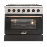 Kucht 36" Pro-Style Natural Gas Dual Fuel Range in Black with Gold Accents, KDF362-K-GOLD