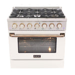 Kucht Signature 36 In. 5.2 cu ft. Natural Gas Range with White Door and Gold Accents, KNG361-W-GOLD