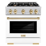 ZLINE Autograph 30" 4.2 cu. ft. Select Gas Range with 4 Burners in Stainless Steel with White Matte Door and Polished Gold Accents, HGRZ-WM-30-G