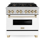 ZLINE Autograph 36" 4.6 cu. ft. Legacy Dual Fuel Range with 6 Burner Gas Cooktop and Electric Convection Oven in Satin Stainless Steel with White Matte Door and Polished Gold Accents, RASZ-WM-36-G
