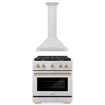 - ZLINE Autograph Package - 30 In. Gas Range, Range Hood in Stainless Steel with Gold Accents, 2AKP-RGRH30-G