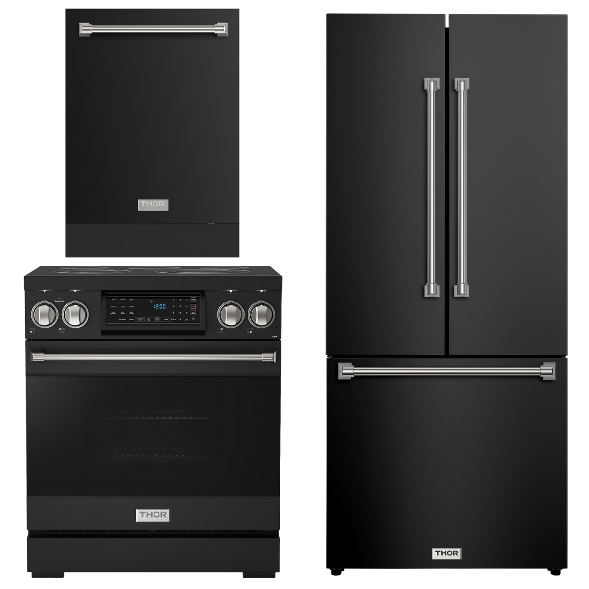 Gordon Ramsay by THOR Kitchen Package - 30" Electric Range, 30" Refrigerator with Ice Maker and Dishwasher in Black Matte with Stainless Steel Accents, AP-RSE30B-SS-1