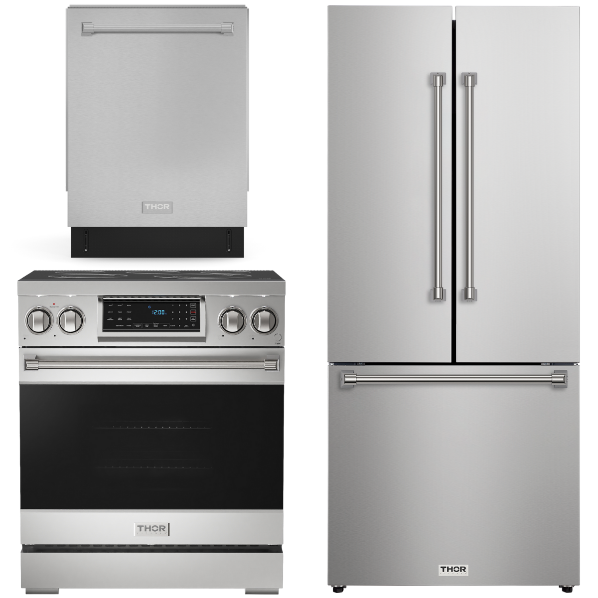 Gordon Ramsay by THOR Kitchen Package - 30" Electric Range, 30" Refrigerator with Ice Maker and Dishwasher in Stainless Steel, AP-RSE30-1