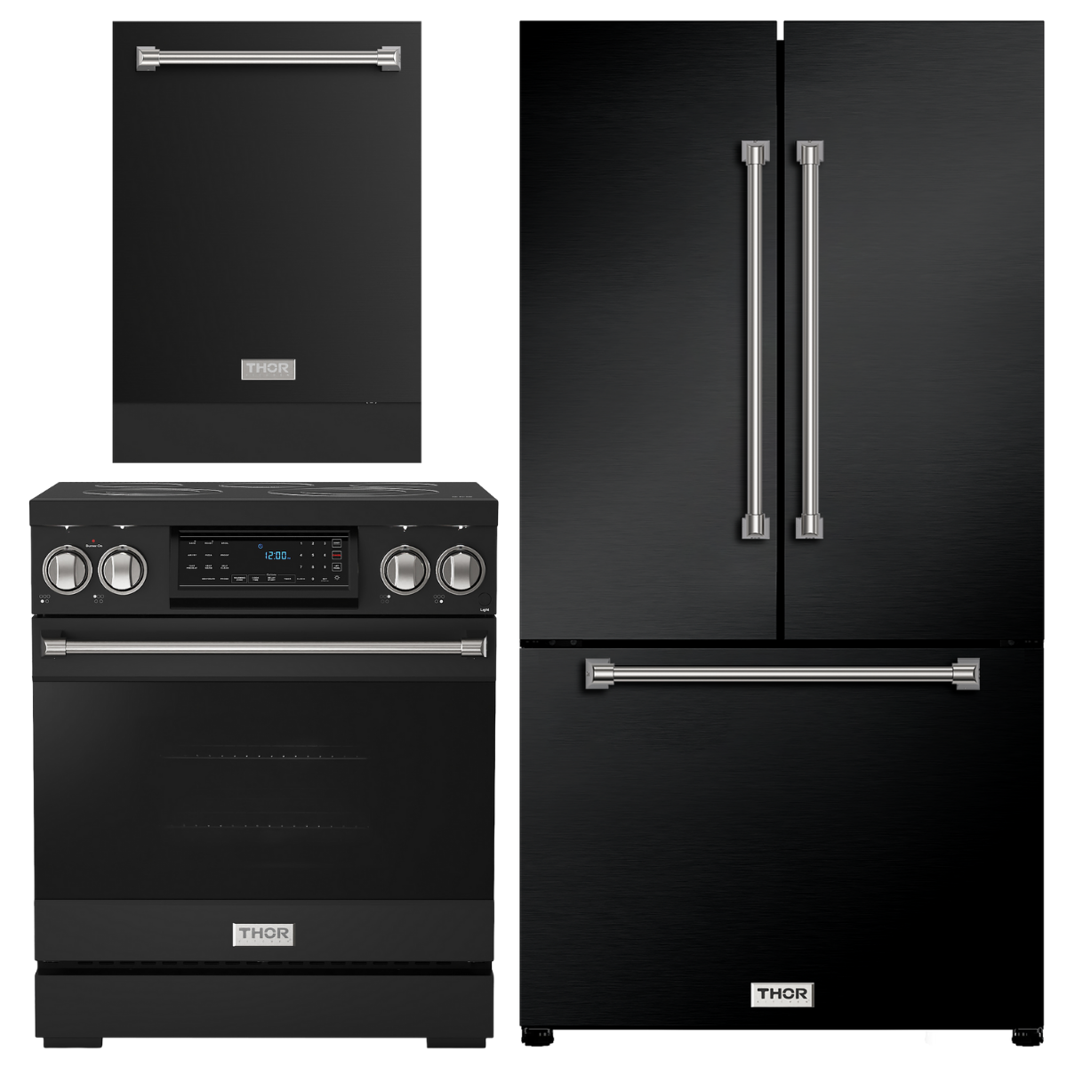 Gordon Ramsay by THOR Kitchen Package - 30" Electric Range, 36" Refrigerator with Ice Maker and Dishwasher in Black Matte with Stainless Steel Accents, AP-RSE30B-SS-2