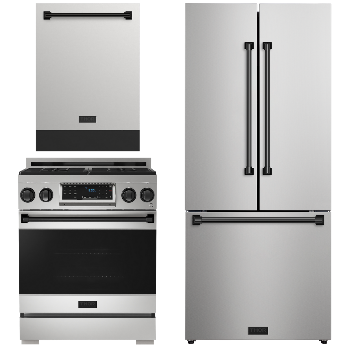 Gordon Ramsay by THOR Kitchen Package - 30" Gas Range, 30" Refrigerator with Ice Maker and Dishwasher in Stainless Steel with Black Accents, AP-RSG30-BLK-1