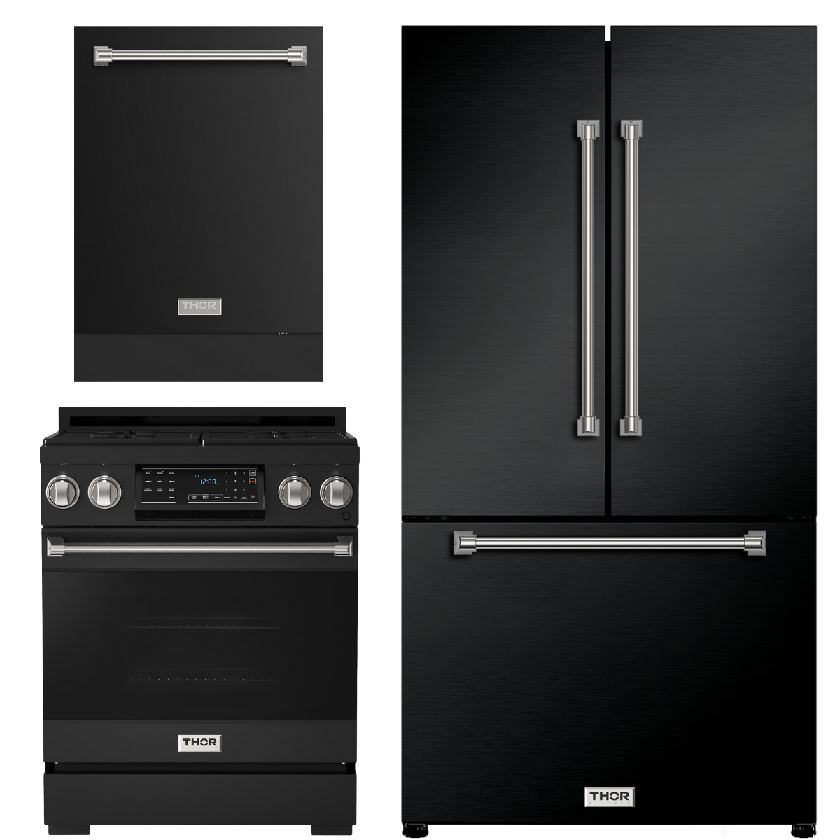 Gordon Ramsay by THOR Kitchen Package - 30" Gas Range, 36" Refrigerator with Ice Maker and Dishwasher in Black Matte with Stainless Steel Accents, AP-RSG30BLP-SS-2