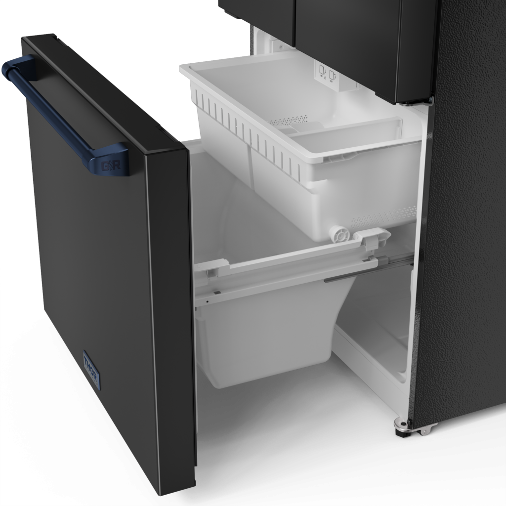 Gordon Ramsay by THOR Kitchen 30" 17.5 cu. ft. French Door Counter Depth Refrigerator with Ice Maker in Matte Black with Navy Blue Accents, RF3017FFD00-BLU