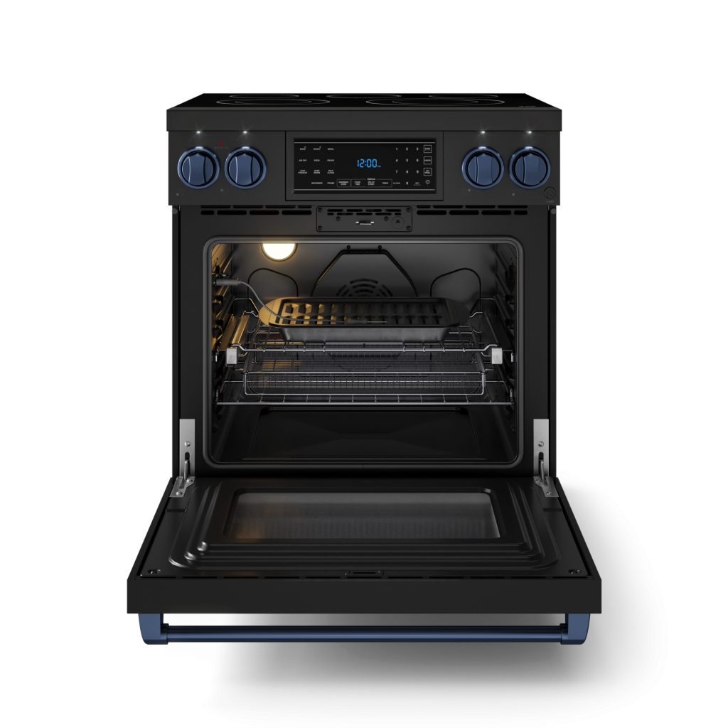 Gordon Ramsay by THOR Kitchen 30" 4.55 cu. ft. Professional Electric Range with Tilt Panel Touch Control, Self-Clean and Air Fry in Matte Black with Navy Blue Accents, RSE30B-BLU